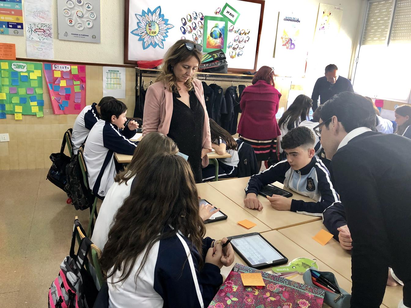 Ayer recibimos la visita de compañeros del Colegio Sagrada Familia para contrastar la metodología que se está siguiendo en las aulas. Nuestros alumnos de ESO diseñaron y modelaron las rutinas adoptando el rol de profesor en las sesiones para, después, ser protagonistas en las mesas redondas donde debatieron sobre el modelo educativo del centro. Los alumnos se empoderan y todos nos enriquecemos. Muchas gracias al Colegio Sagrada Familia de Alzira por darnos la oportunidad de hacer visible nuestro trabajo y compartir ilusiones por una idea de innovación educativa común.