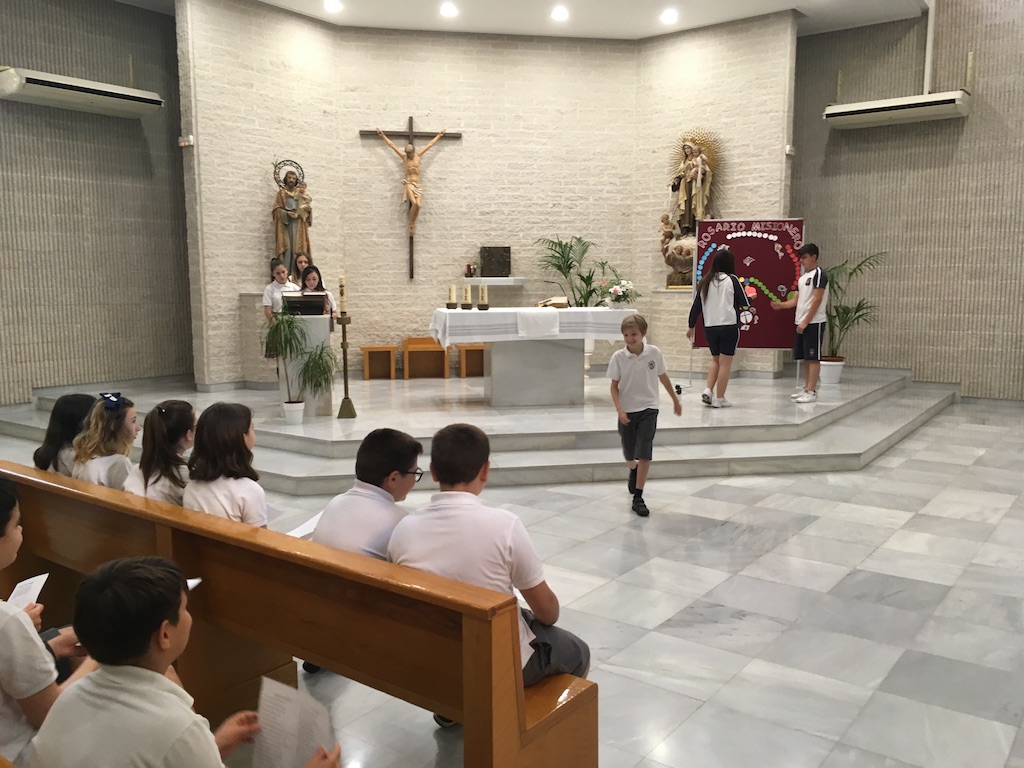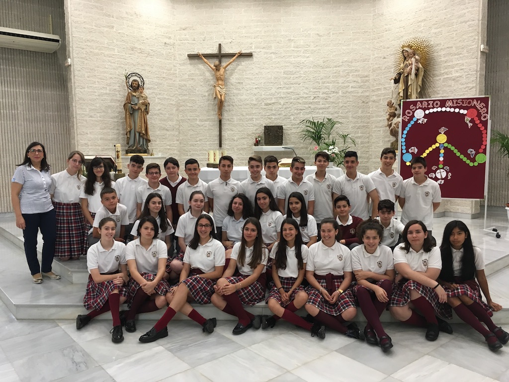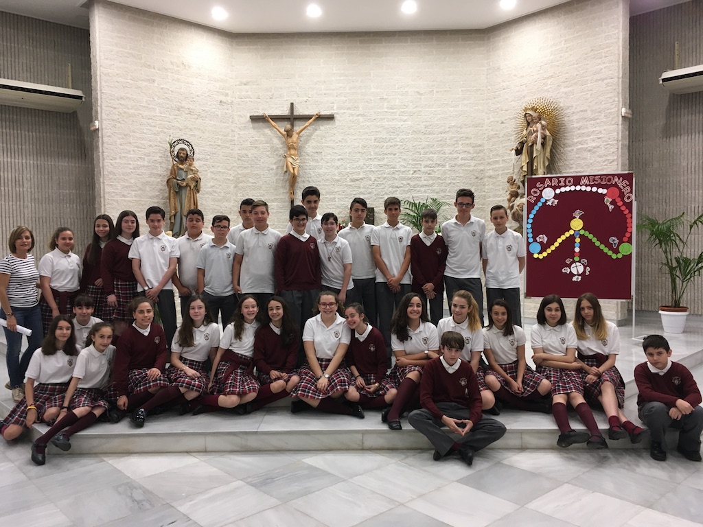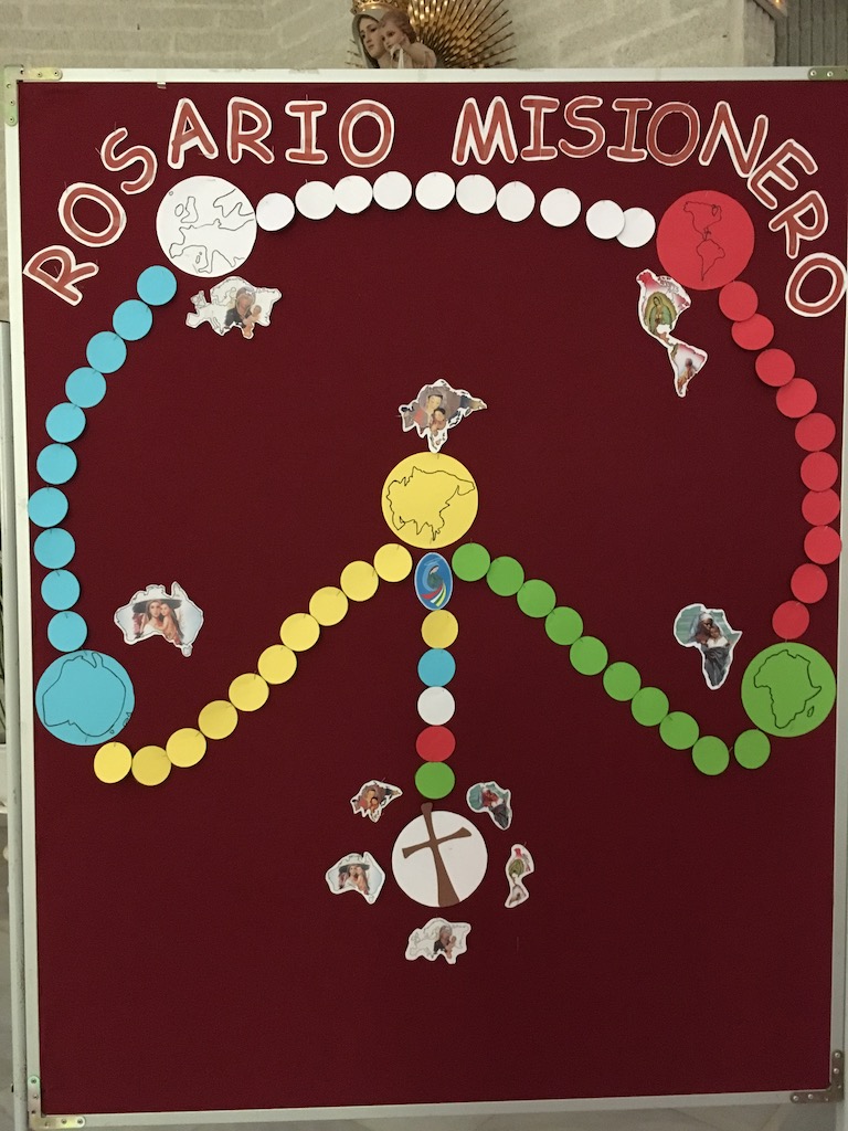 Hoy, trece de Mayo, hemos rendido en nuestro colegio un homenaje a la Madre de Jesús bajo la advocación de Fátima. En esta celebración hemos rezado de manera muy especial el rosario misionero. A través de él, por intercesión de María, hemos pedido al Padre por las intenciones y necesidades de todo el mundo.