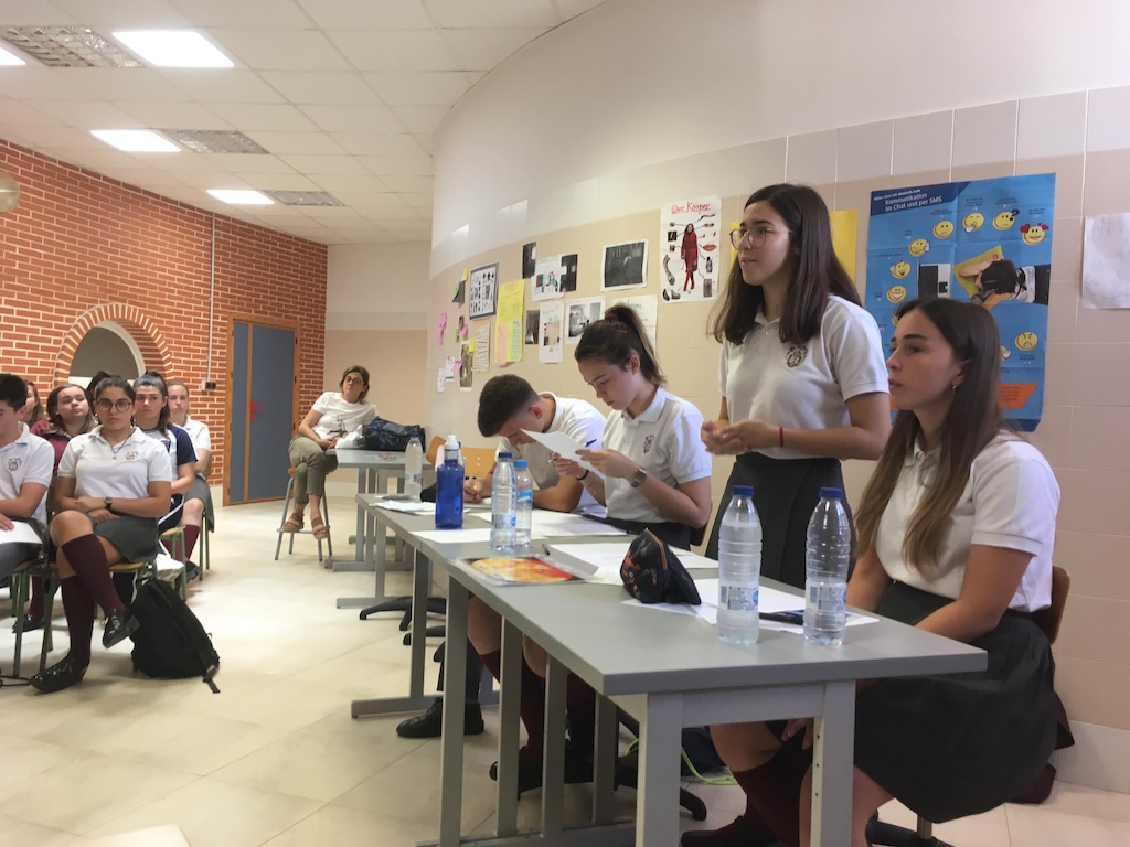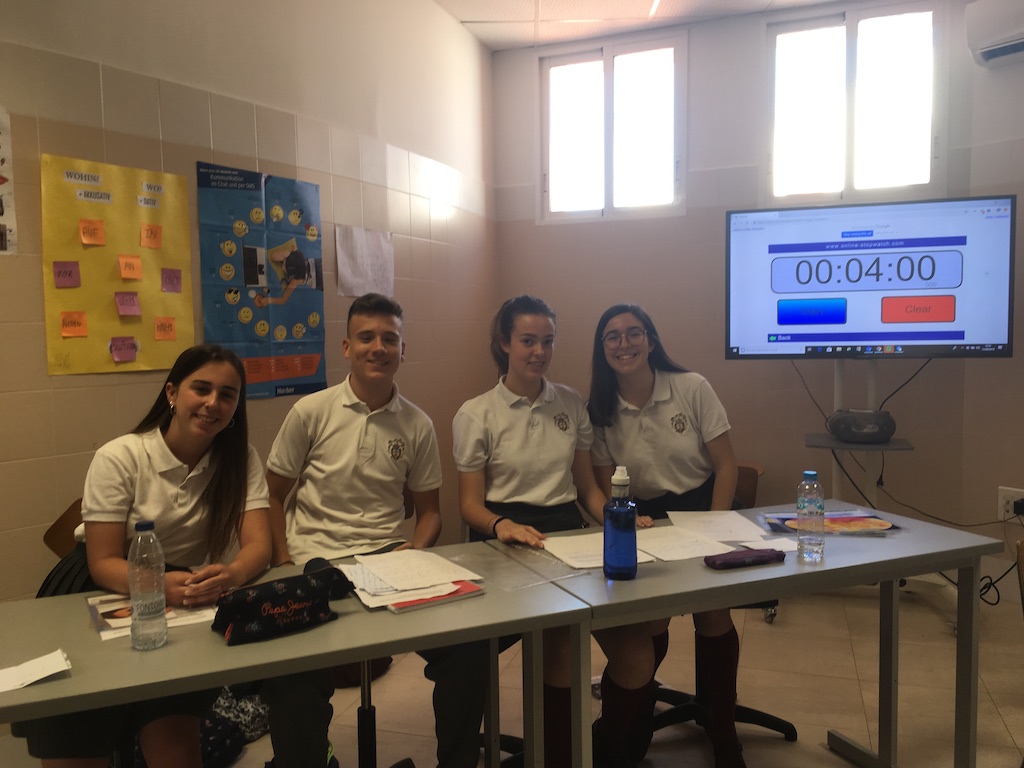 El tema que tenían que debatir era “Banning diesel and petrol cars as a measure against climate change”. Al llegar sorteamos opciones y nos tocó estar a favor de esta afirmación. Paula Salinas comenzó la intervención de nuestro equipo, después Inés Ortiz introdujo los argumentos, a continuación Rocío Gilabert refutó los argumentos del otro equipo y, finalmente, Carlos Rives concluyó nuestra participación.