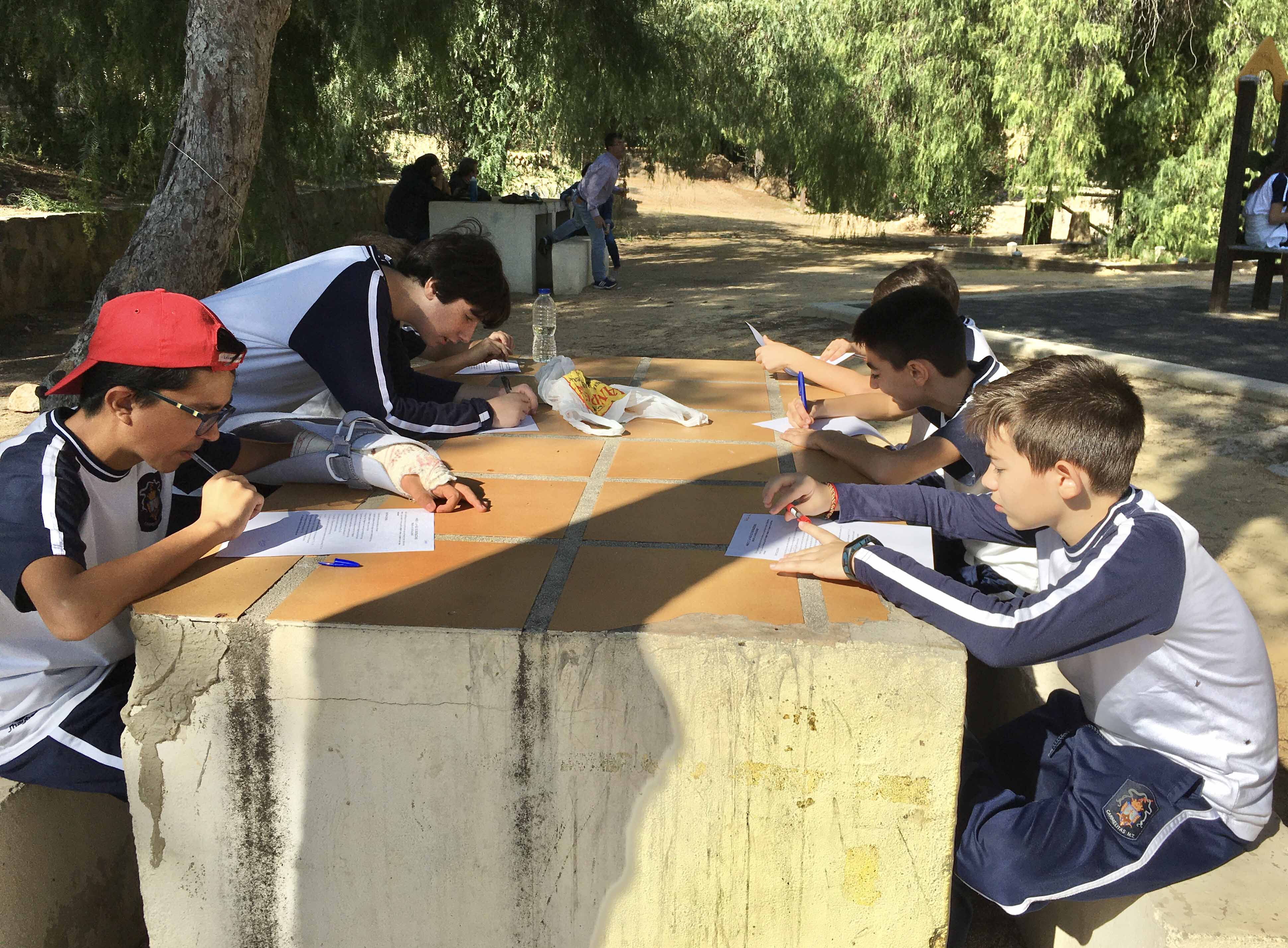 Los alumnos de 1º ESO junto con sus profesores Álvaro, Asun y Loli-Reme pasaron su jornada de convivencia en el Paraje Natural Municipal de la Cueva Ahumada.