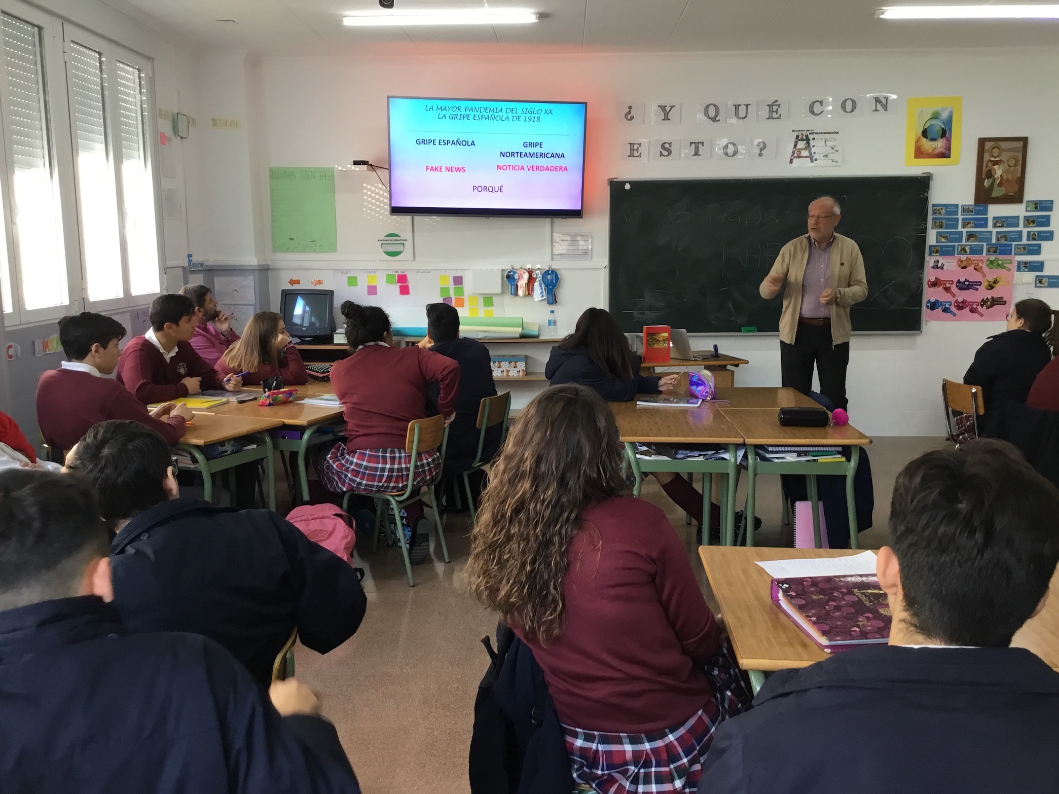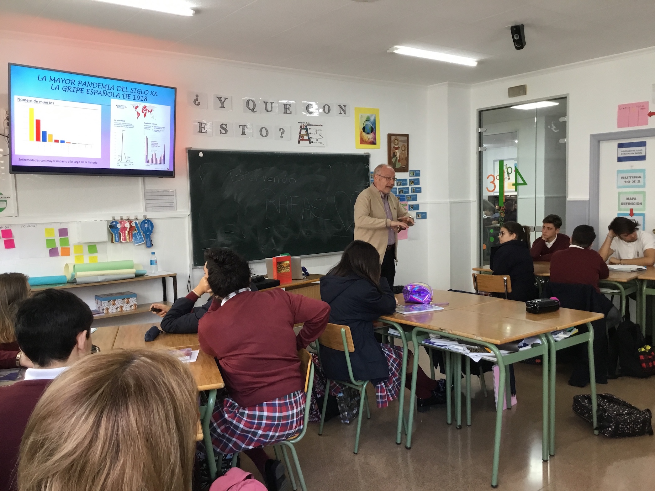 El pasado martes, 12 de noviembre, nuestro colegio tuvo la oportunidad de contar con la presencia del escritor callosino Rafael Salinas Serrano. Los alumnos y alumnas de 4º ESO asistieron a la presentación de su libro: "La mayor pandemia del siglo XX. La gripe española de 1918", basado en una amplia investigación sobre esta pandemia. Los alumnos quedaron muy impresionados por todo lo que el autor les relató, sobretodo por lo concerniente a Callosa de Segura.
