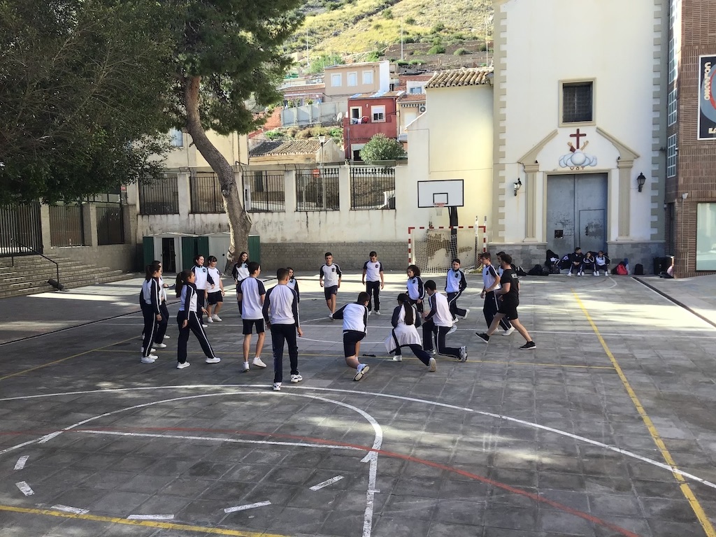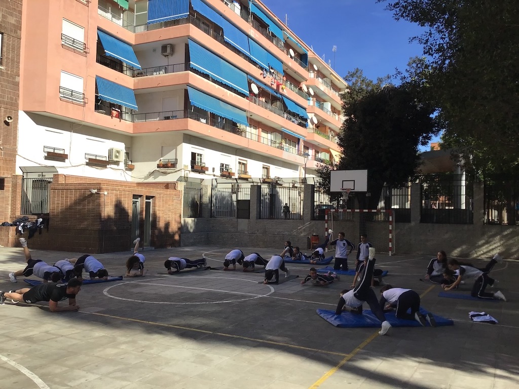Los alumnos de 3º y 4º ESO del colegio La Purísima han disfrutado de una sesión de entrenamiento funcional adaptado a sus características en nuestro centro. En primer lugar, se les ha proyectado una pequeña presentación donde se les ha informado de los beneficios de realizar ejercicios funcionales, orientados desde el punto de vista de la salud. A continuación, se han desplazado al patio donde han podido poner en práctica diferentes rutinas de entrenamiento, siempre coordinadas y supervisadas por el especialista Alejandro Hernández y el profesor de Educación Física. El objetivo de la actividad era el de ofrecerles a los alumnos la oportunidad de trabajar la capacidad de fuerza de manera saludable y responsable. Por consiguiente, además de lograr el objetivo, se han divertido y han disfrutado de la experiencia deportiva.