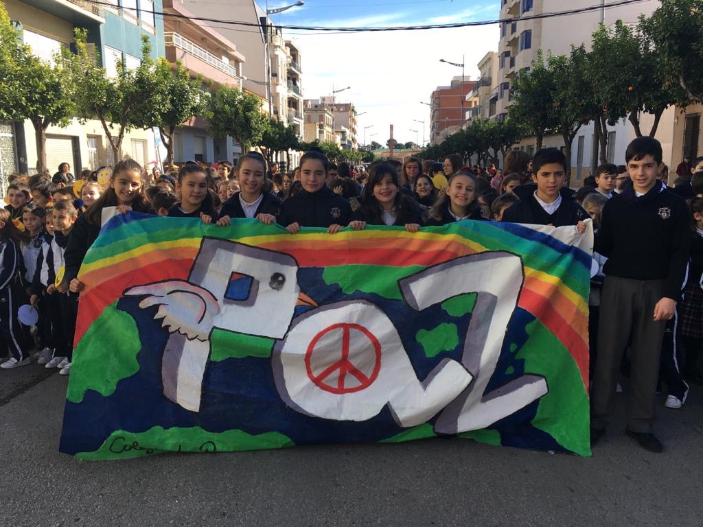 En la mañana del 30 de enero, el alumnado del colegio realizó un mosaico con globos de colores en los que se reflejaba la palabra PAZ y un arco iris. Posteriormente se leyó un manifiesto y se inició un recorrido por las calles de Callosa de Segura junto con otros centros de la localidad.