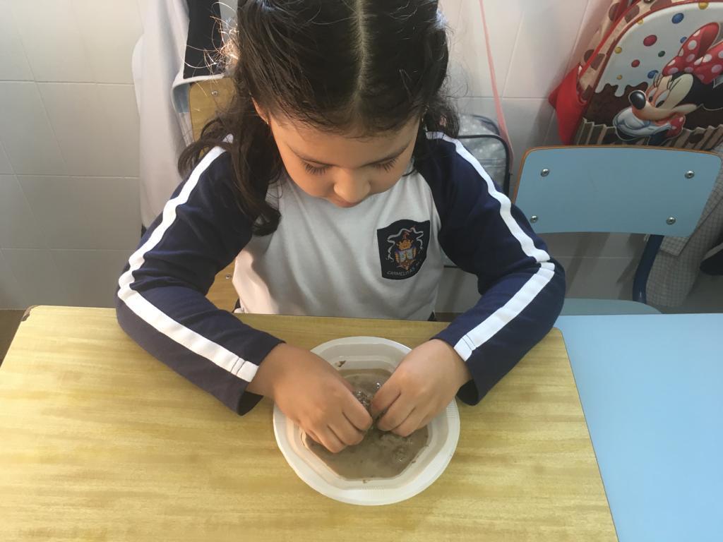 Los alumnos de 5 años han experimentado los diferentes estados del barro con agua.