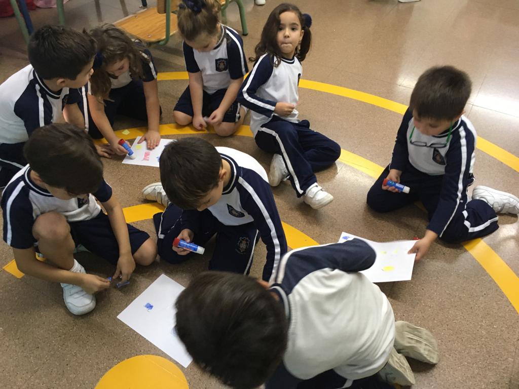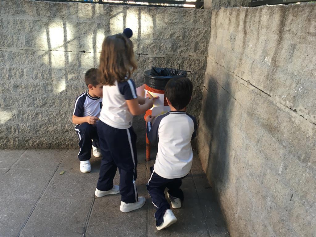 Los alumnos de 5 años utilizan la técnica del frottage en diferentes suelos, paredes y distintos elementos del entorno para experimentar el cambio entre textura táctil y visual.