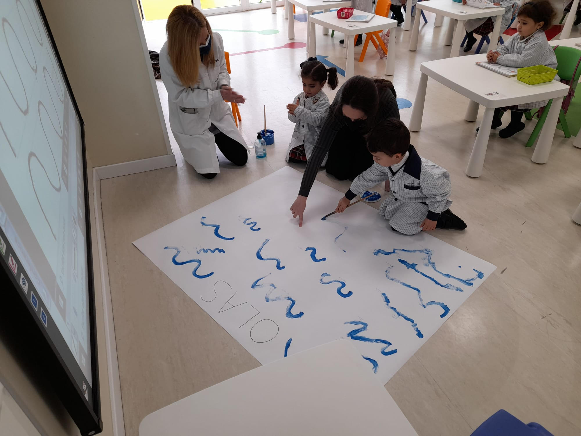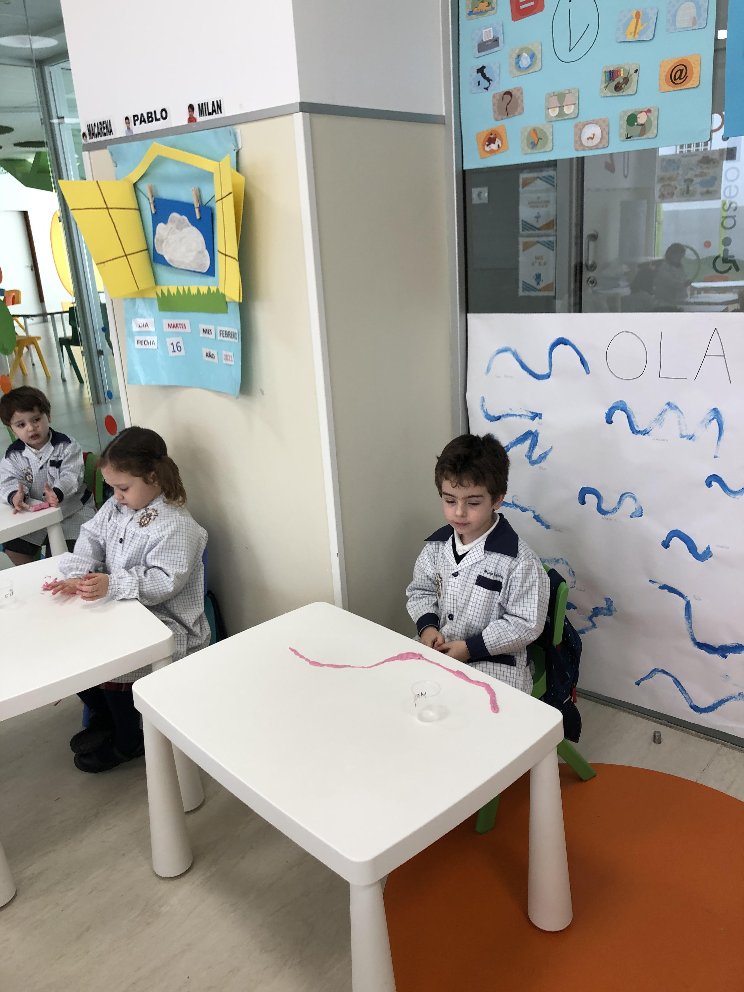 Los alumnos de 3 años aprenden el trazo ola de una manera lúdica y muy divertida.