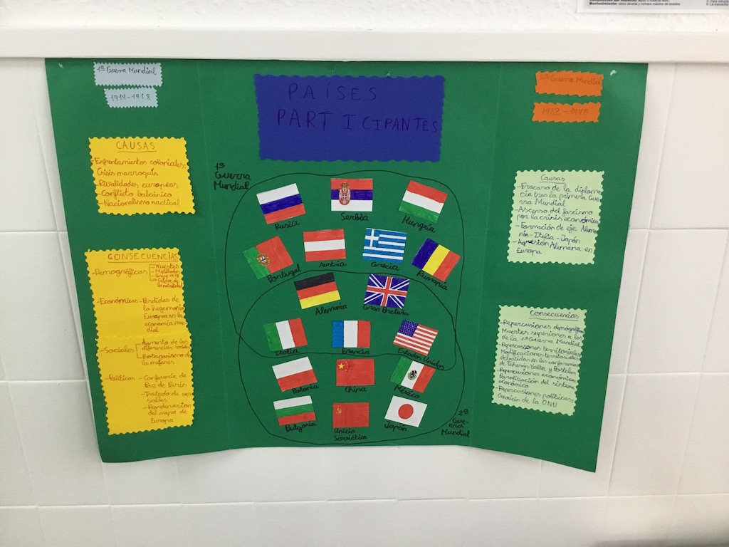 Los alumnos de sexto de Primaria a través de diversos medios, han indagado acerca de los orígenes de la historia de la Unión Europea. Para ello, han obtenido conocimientos previos sobre la I y II Guerra Mundial analizando las causas y consecuencias de las mismas utilizando distintas rutinas de pensamiento.