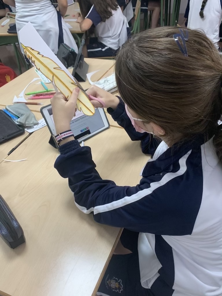Por otro lado, 5º, 6º de primaria y Educación Secundaria han trabajado la rutina del CSI para reflexionar sobre los aspectos más relevantes de la vida de Santa Teresa de Jesús y han elaborado y decorado un marca páginas con forma de pluma.