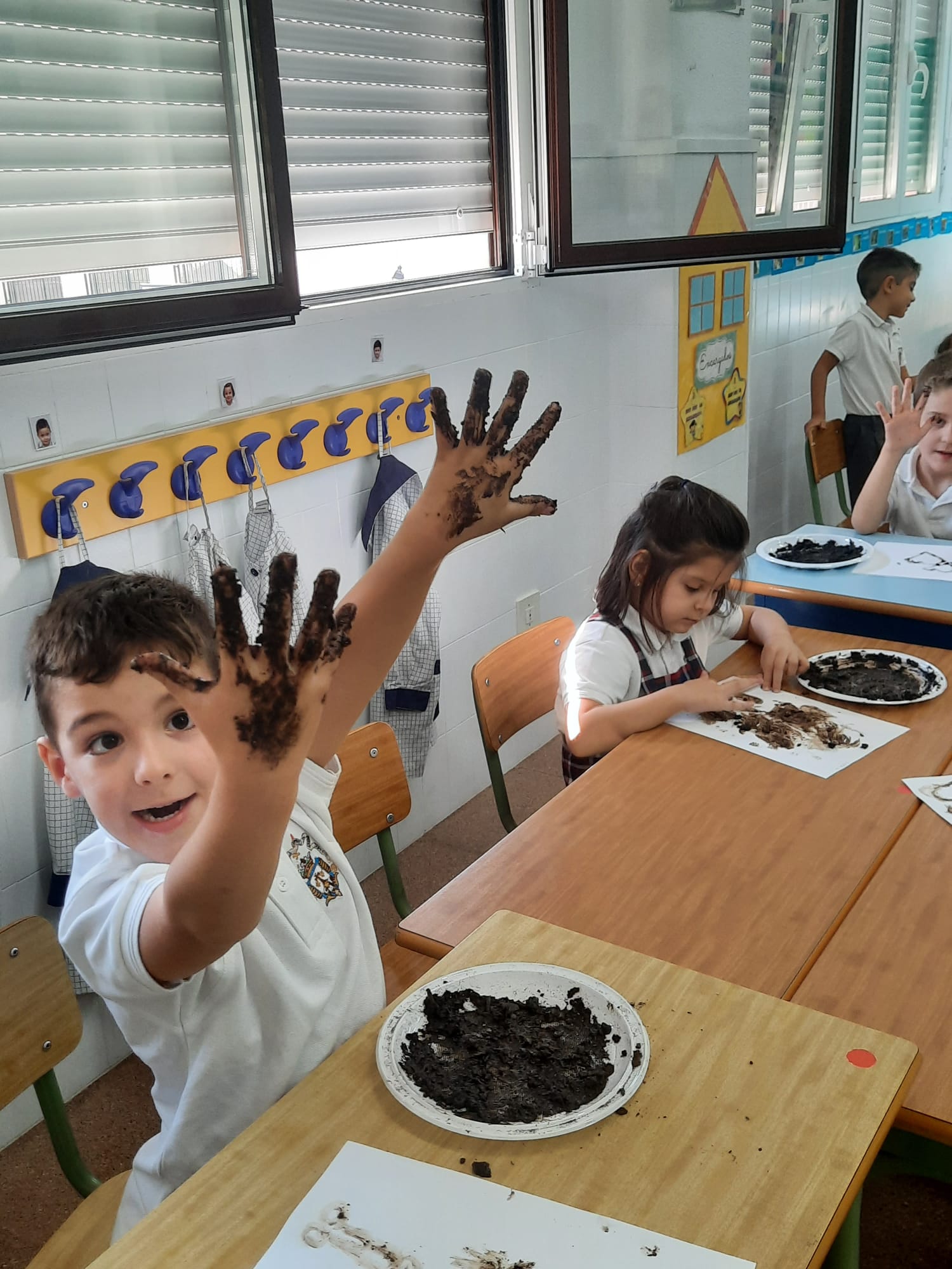 Los alumnos de educación infantil 5 años han experimentado los diferentes estados del barro con agua .