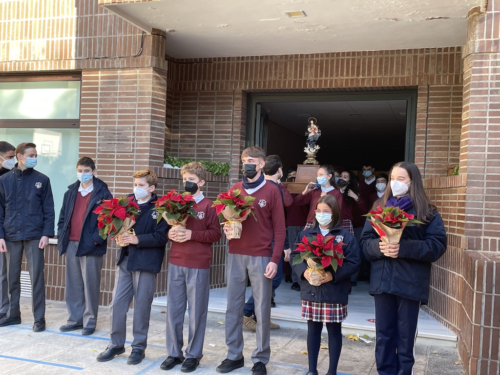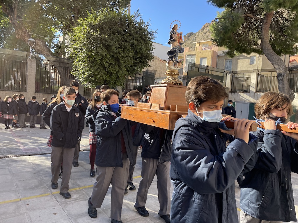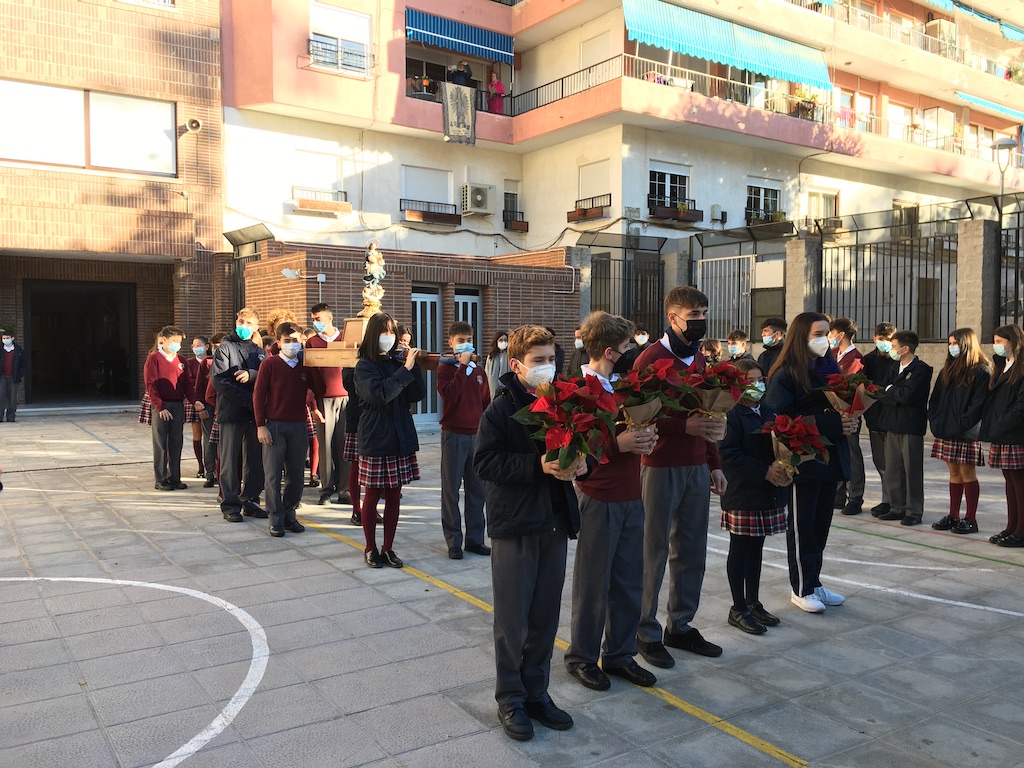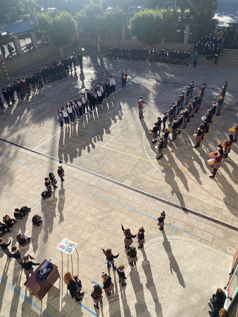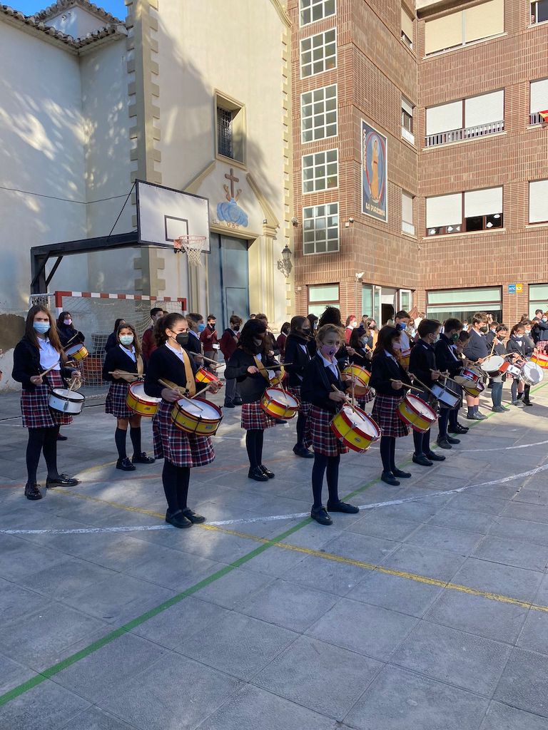 - Por último, como colofón a esta celebración, esta mañana en el interior del patio de nuestro centro ha tenido lugar el acto en honor a La Purísima, acompañada por todo el alumnado del centro, PAS, profesorado, Comunidad de Hermanas CMT y por los tambores, tan característicos en esta fecha.