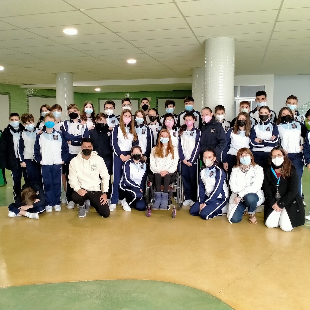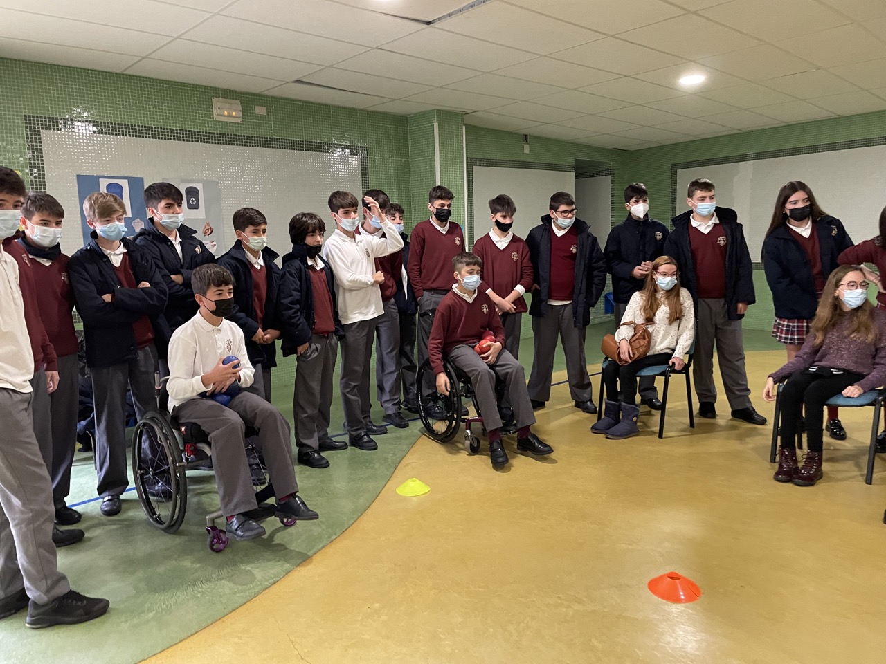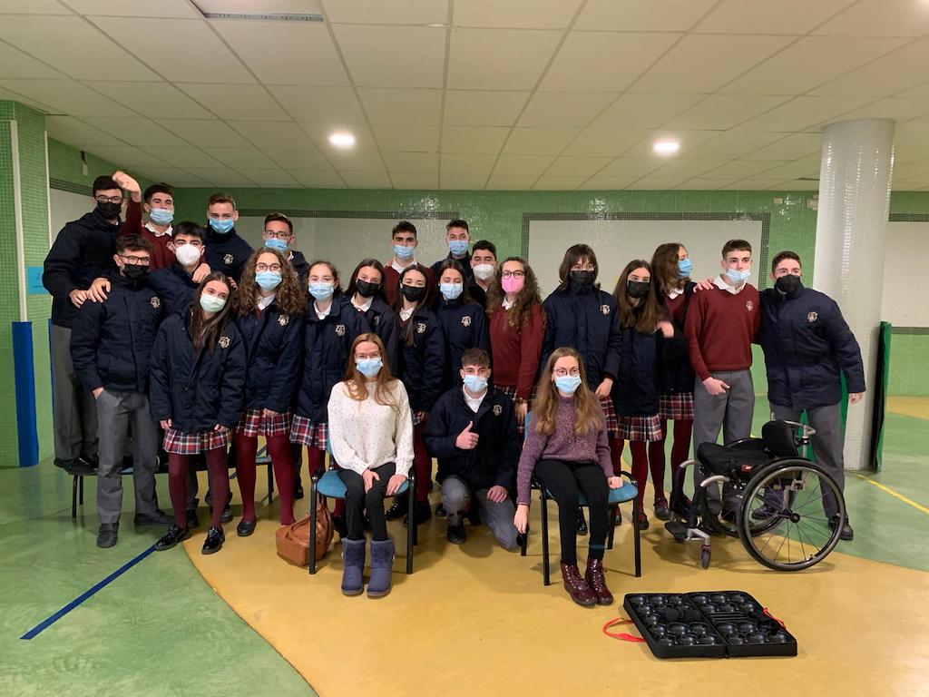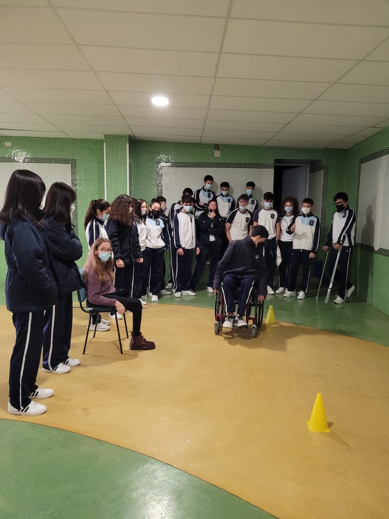 Marina y Elena, jóvenes con discapacidad nos han visitado el pasado viernes 25 de marzo. Tras el día de la discapacidad, se generaron actividades en tercero y cuarto de la ESO viendo un video de los deportes que practican Elena y otros compañeros, ¡Y hoy ha venido a contarnos su experiencia junto con Marina! Estas dos jóvenes utilizan silla de ruedas para desplazarse, pero son un ejemplo de vivencias personales y como deportistas. Mediante un Kahoot y videos, tras los que han tenido una charla con los alumnos del cole, y una actividad deportiva en silla de ruedas, nos han acercado a su realidad. Han visitado los cuatro cursos de la ESO y compartido buenos ratos con ellos, mostrándoles actividades como el slalom y la boccia, en las que ambas compiten.