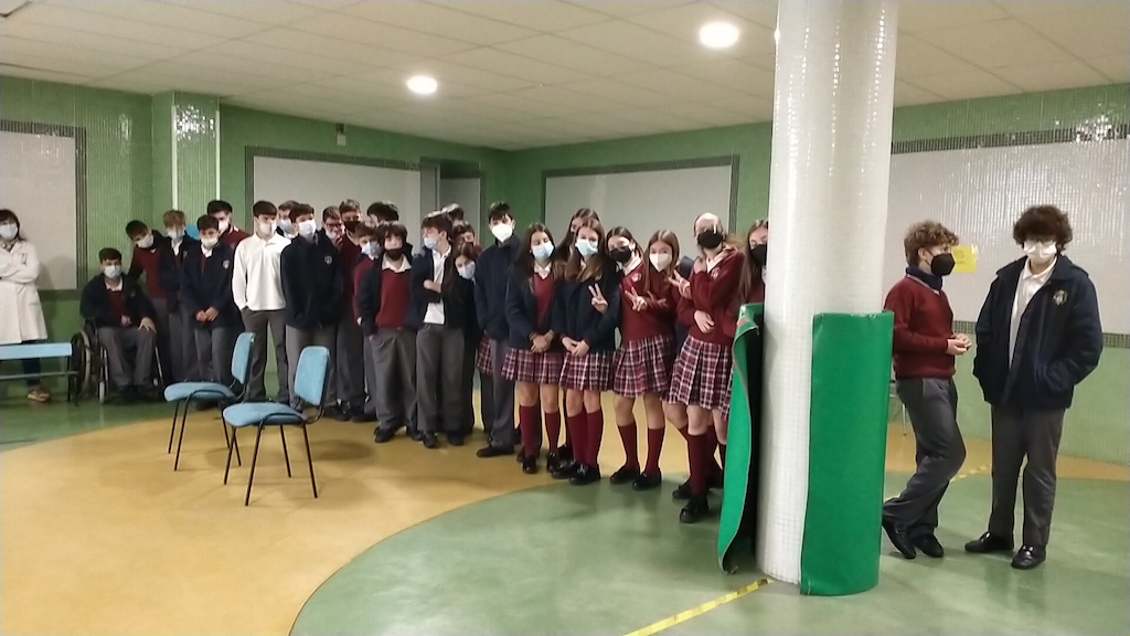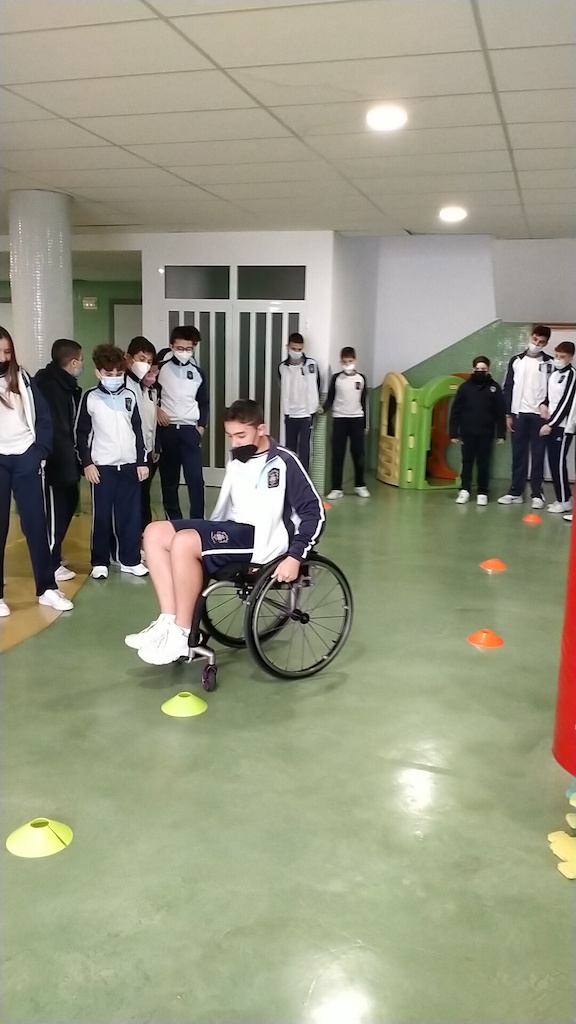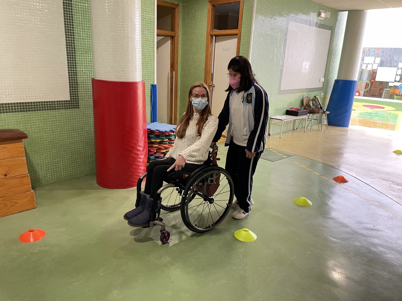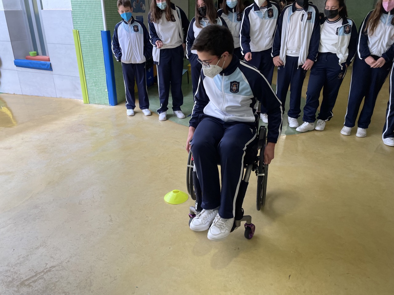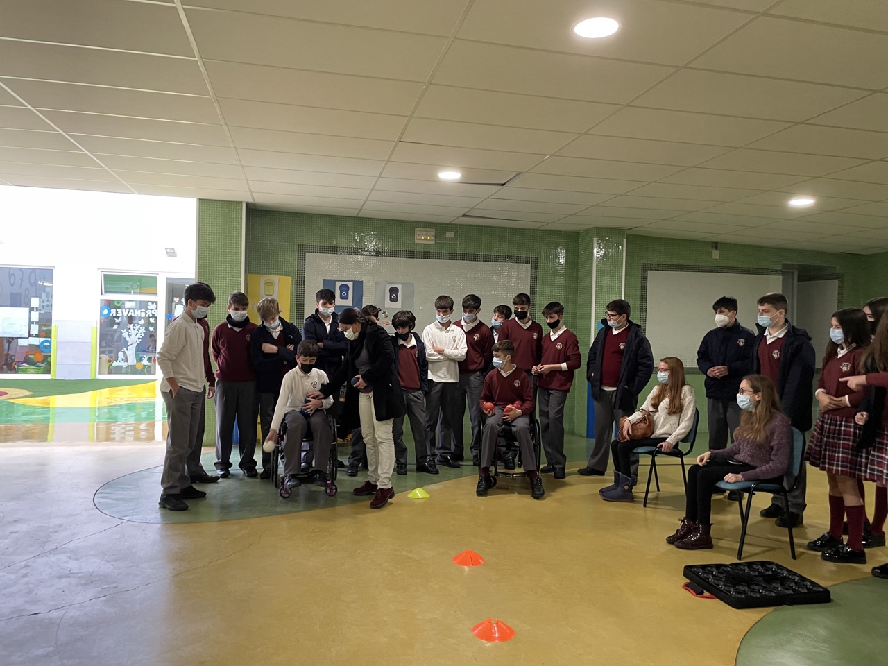 Marina y Elena, jóvenes con discapacidad nos han visitado el pasado viernes 25 de marzo. Tras el día de la discapacidad, se generaron actividades en tercero y cuarto de la ESO viendo un video de los deportes que practican Elena y otros compañeros, ¡Y hoy ha venido a contarnos su experiencia junto con Marina! Estas dos jóvenes utilizan silla de ruedas para desplazarse, pero son un ejemplo de vivencias personales y como deportistas. Mediante un Kahoot y videos, tras los que han tenido una charla con los alumnos del cole, y una actividad deportiva en silla de ruedas, nos han acercado a su realidad. Han visitado los cuatro cursos de la ESO y compartido buenos ratos con ellos, mostrándoles actividades como el slalom y la boccia, en las que ambas compiten.