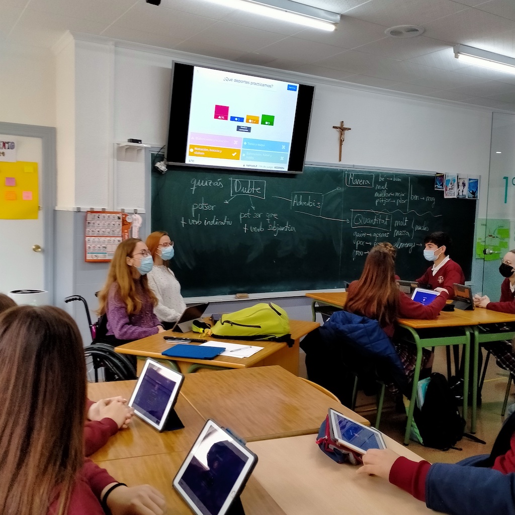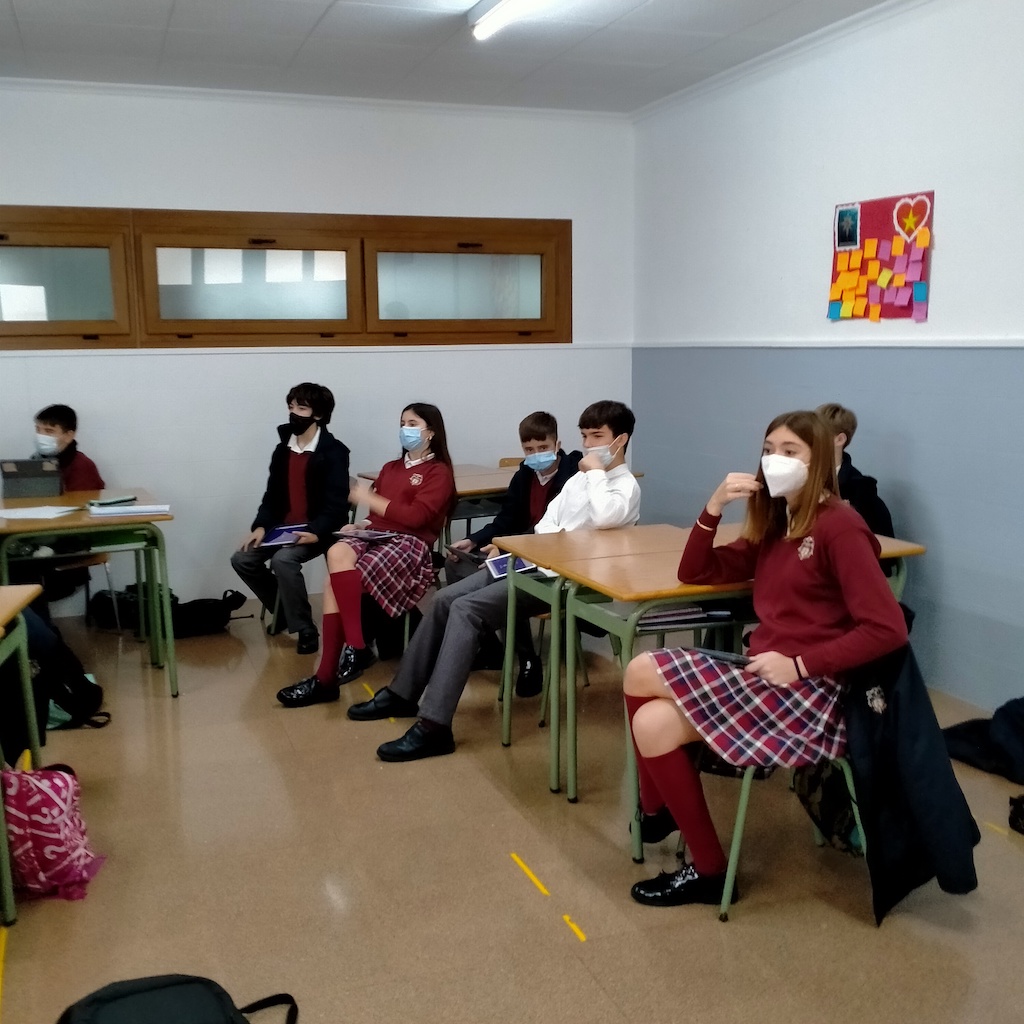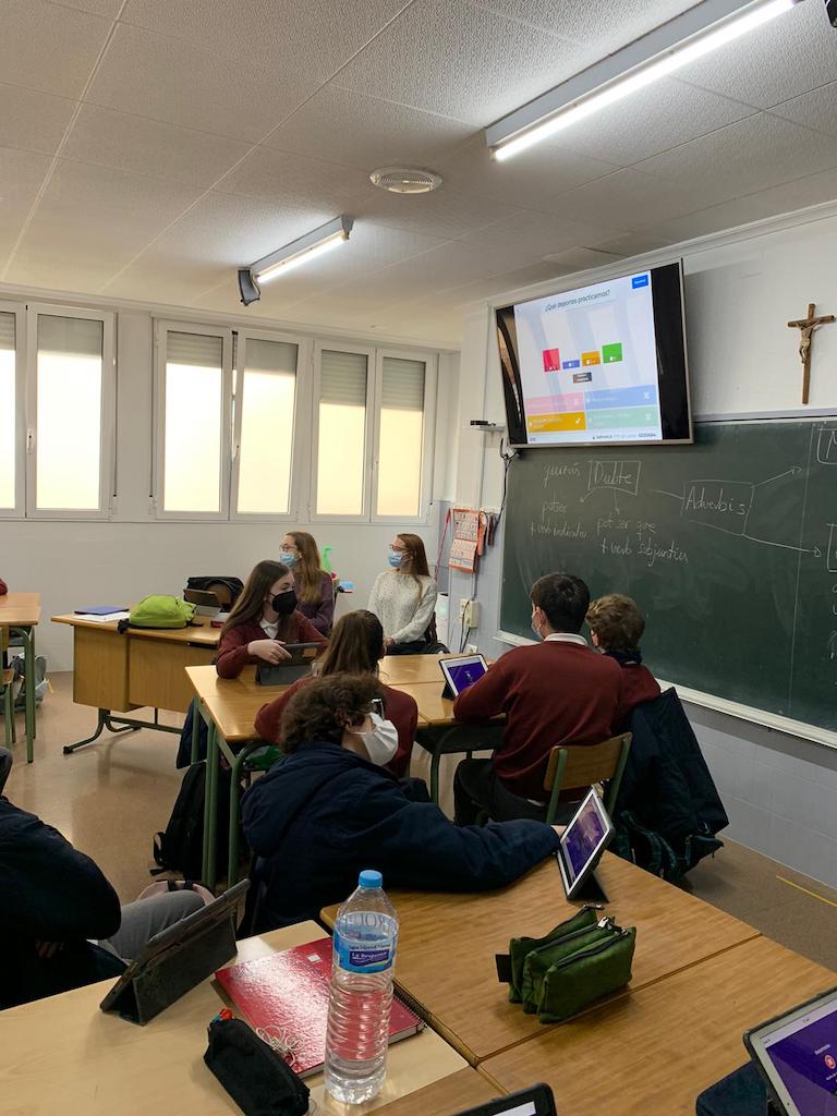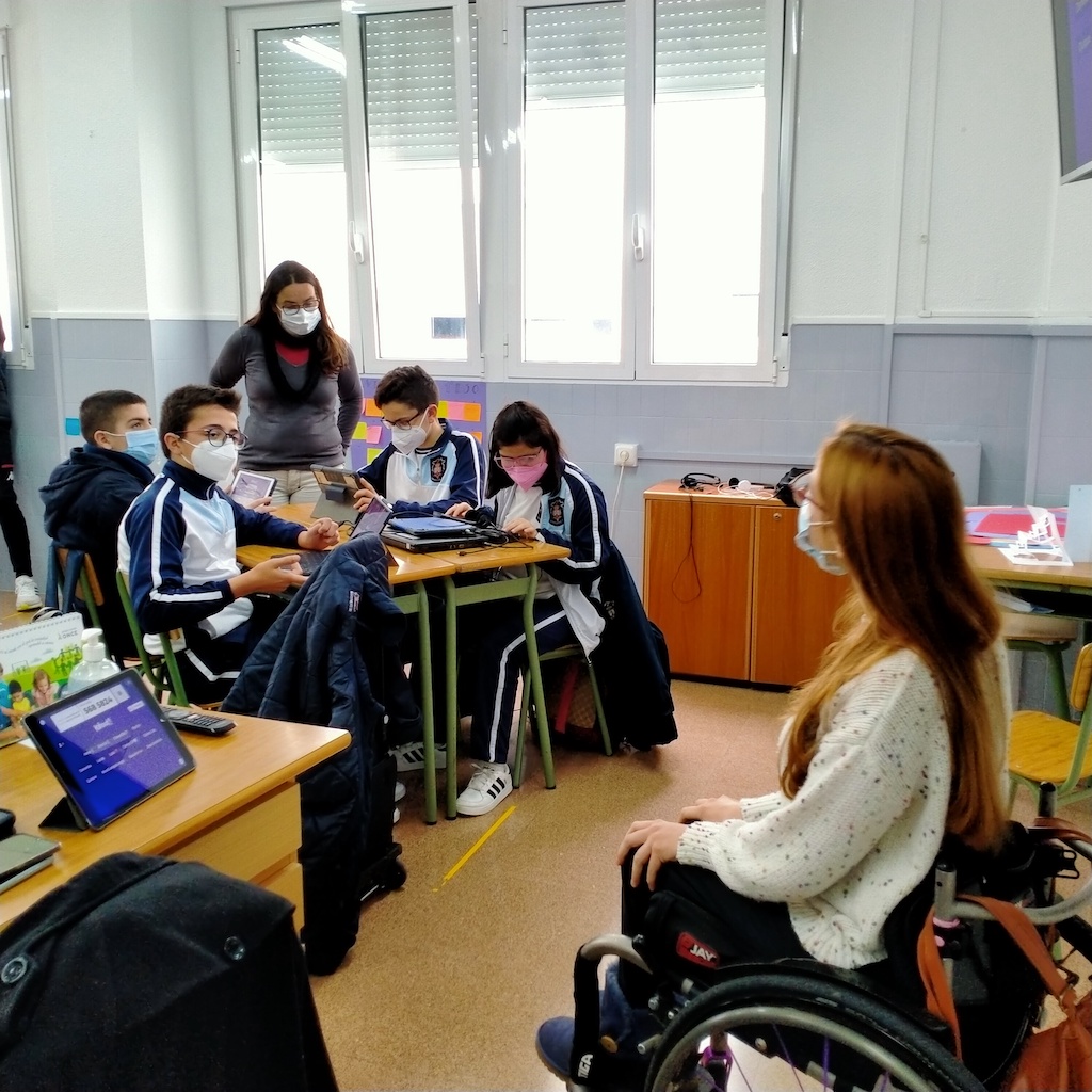 Marina y Elena, jóvenes con discapacidad nos han visitado el pasado viernes 25 de marzo. Tras el día de la discapacidad, se generaron actividades en tercero y cuarto de la ESO viendo un video de los deportes que practican Elena y otros compañeros, ¡Y hoy ha venido a contarnos su experiencia junto con Marina! Estas dos jóvenes utilizan silla de ruedas para desplazarse, pero son un ejemplo de vivencias personales y como deportistas. Mediante un Kahoot y videos, tras los que han tenido una charla con los alumnos del cole, y una actividad deportiva en silla de ruedas, nos han acercado a su realidad. Han visitado los cuatro cursos de la ESO y compartido buenos ratos con ellos, mostrándoles actividades como el slalom y la boccia, en las que ambas compiten.