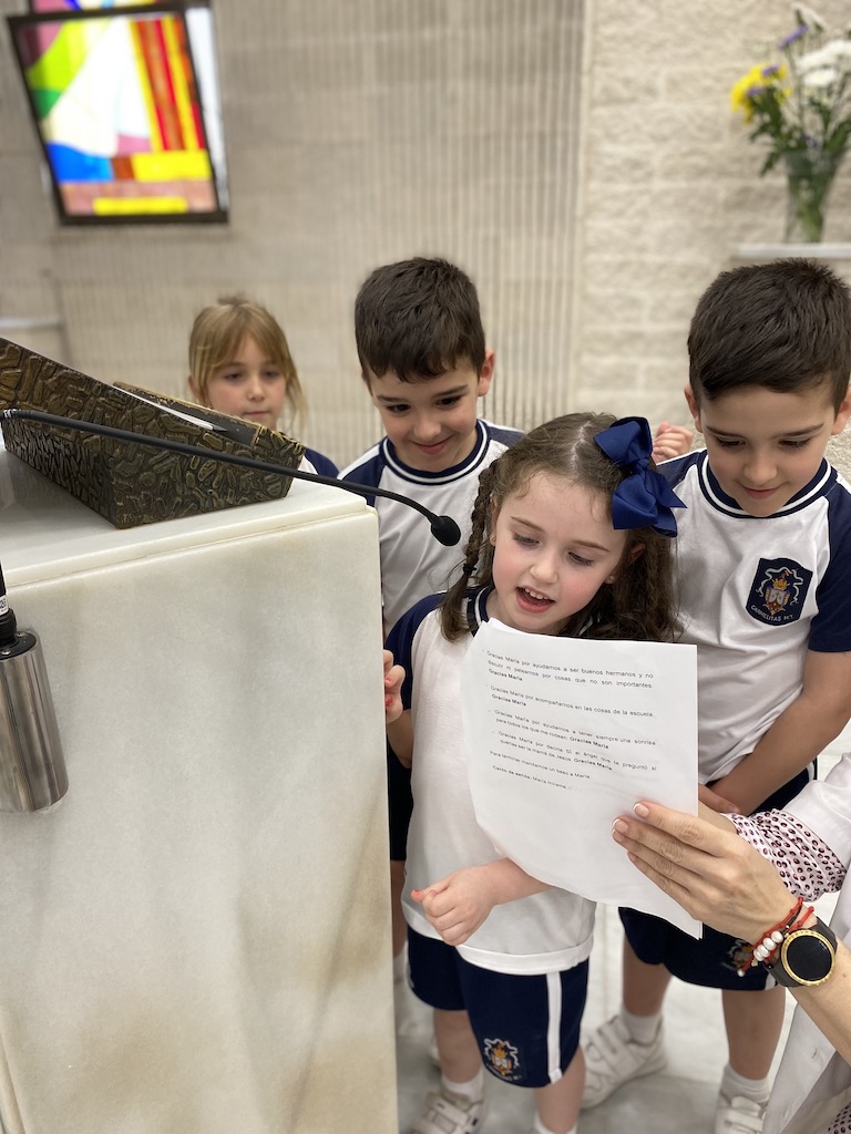 Por todo ello, el pasado viernes 13 de mayo, día de la Virgen de Fátima, celebramos en nuestro colegio el Acto Mariano en honor a nuestra Madre la Virgen María. Las diferentes etapas educativas pudimos disfrutar de un momento de reflexión, acompañamiento y oración en la capilla de nuestro colegio y, de este modo, acordarnos de una forma muy especial, en este mes de mayo, de la Virgen María.