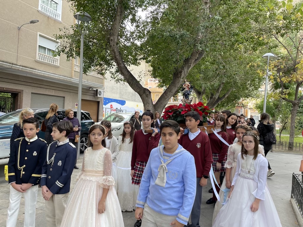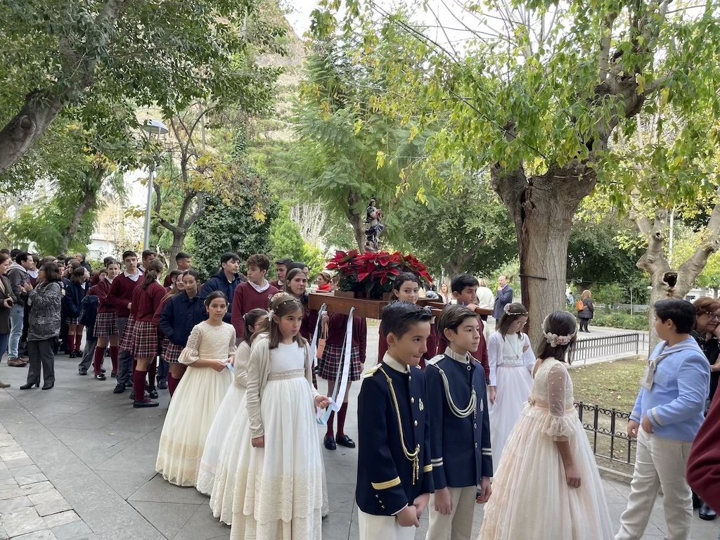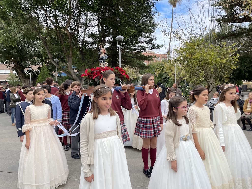 Hoy se ha celebrado en nuestro colegio el día grande de nuestra Patrona la Inmaculada Concepción. El día ha comenzado con una pequeña oración en las aulas dedicada a la Virgen y ha continuado con un solemne acto en la capilla. Posteriormente, se ha realizado la procesión en honor a la Purísima.