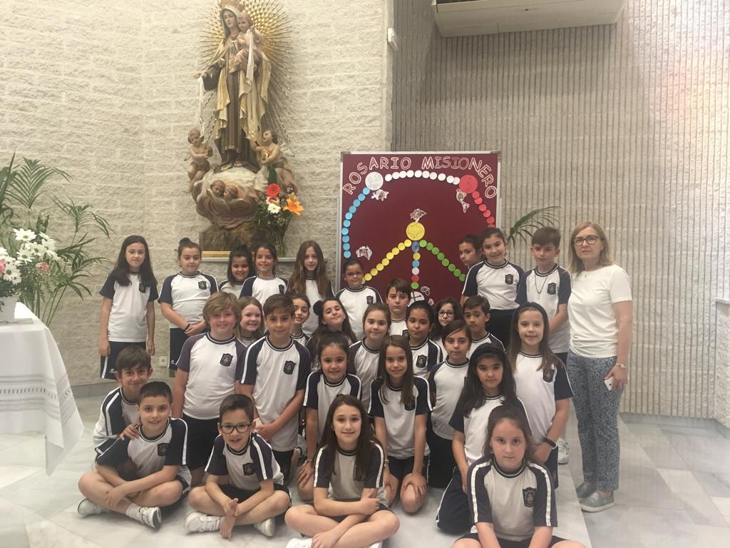 Hoy, trece de Mayo, hemos rendido en nuestro colegio un homenaje a la Madre de Jesús bajo la advocación de Fátima. En esta celebración hemos rezado de manera muy especial el rosario misionero. A través de él, por intercesión de María, hemos pedido al Padre por las intenciones y necesidades de todo el mundo.