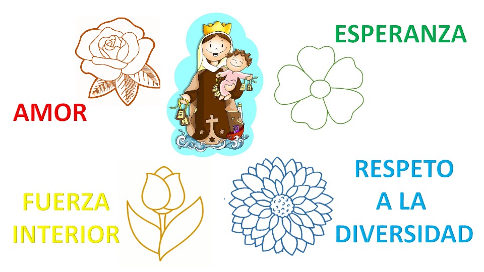 Esta semana llenaremos el cole de flores, en cada una de ella ofreceremos a María nuestro AMOR, nuestra FUERZA INTERIOR, nuestra ESPERANZA, y nuestro RESPETO A LA DIVERSIDAD.