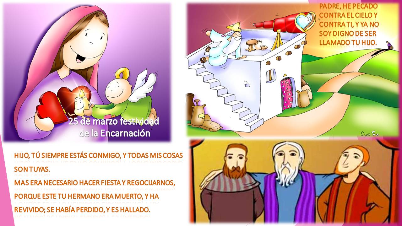 Esta semana tenemos grandes acontecimientos en la Iglesia, el lunes celebramos la Encarnación o Anunciación del Señor, dos nombres para llamar al gran misterio de un Dios tan cercano que se hace hombre para habitar en medio de su pueblo, y el domingo escucharemos la parábola del hijo pródigo.